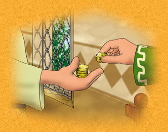 Un nobile Signore, che deve partire per un viaggio, chiama i suoi servi per affidare loro delle monete d’oro.