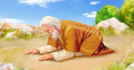 - La prostrazione di Abram. Avrete notato come il fatto che Dio parli sia conseguenza dell’atto di adorazione di Abram, come a dire in modo implicito che la prima cosa da fare per imitare il grande Abram è quella di adorare Dio. Cari sposi, avete bisogno di parlare con Dio? avete bisogno di risposte da Lui? La prima e necessaria cosa da fare è adorare Dio come Abram, con il viso a terra, a significare che più in basso di così non si può andare; Abram ha espresso con il corpo ciò che c’era dentro il cuore: il Signore è il mio Dio e io sono il suo servo, lo adoro e mi umilio innanzi a Lui. Nella nostra cultura il prostrarsi è stato sostituito con lo stare in ginocchio, ma l’atteggiamento del cuore è lo stesso. Conseguentemente a questo atto di adorazione, non prima, Dio parla con Abram.