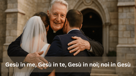 Concludeva Don Silvio: “L’Eucaristia nei segni sensibili con cui ci viene presentata, è figura della Chiesa, è simbolo dell’unità della comunità cristiana, è immagine del corpo mistico”. Ecco il centro, ecco il fondamento, ecco la formula da scolpire dell’anima. “Fare di Cristo il cuore del mondo“, si è detto, letto e sentito molte volte. Ma se Cristo non è il cuore degli sposi, se Cristo non è il cuore del “noi” nuziale allora non potremmo mai trovarLo sulle strade del mondo. Siano essere assolate o polverose, affollate o desertiche. Non potremmo mai trovare il Bello e il Vero nell’astratto se prima non è nel nostro concreto, nella nostra unione, nella nostra intimità. Ecco allora che Don Silvio, nella sua disarmante umiltà, ha reso semplice un concetto enorme: “Gesù in me, Gesù in te, Gesù in noi; noi in Gesù”.