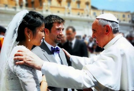 Attraverso questo dono gli sposi sono resi sacramento e Gesù entra nel loro amore per abitarlo perennemente: non più lo sposo da solo, non più la sposa da sola, ma nel loro amore, nella loro unione.