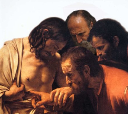 Poi disse a Tommaso: «Metti qua il tuo dito e guarda le mie mani; stendi la tua mano, e mettila nel mio costato; e non essere più incredulo ma credente!».